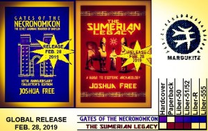 Following on the heels of the esoteric tablet collection contained within the primary source book, the ‘Mardukite Chamberlains’ released a cycle of Year-2 research materials expertly supplementing both mystical and archaeological aspects of the work simultaneously. Joshua Free’s GATES OF THE NECRONOMICON: THE SECRET ANUNNAKI TRADITION OF BABYLON (Mardukite Liber-50,51/52,R+555) premieres on February 28, 2019 as its 10th anniversary hardcover collector’s edition, with a subsequent paperback featuring the Mardukite Liber-50+51/52 portions specific to ancient studies in Mesopotamia concerning Sumerians, Babylonians and the Anunnaki, also scheduled for release on February 28, 2019 as THE SUMERIAN LEGACY: A GUIDE TO ESOTERIC ARCHAEOLOGY by Joshua Free.